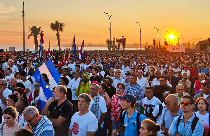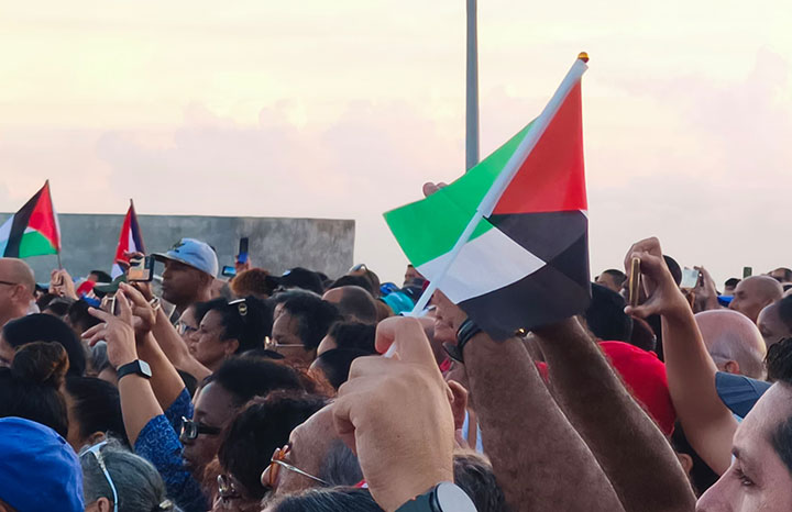 Con la presencia de Miguel Díaz-Canel Bermúdez, Primer Secretario del Comité Central del Partido Comunista de Cuba y Presidente de la República, tiene lugar en la Tribuna Antiimperialista José Martí el acto que reafirma la solidaridad de la isla con el pueblo de Palestina, al que asisten unos 100 mil habaneros.