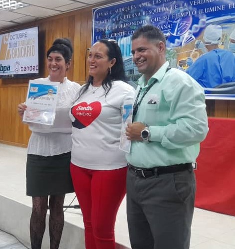 La celebración del Día del Trabajador Bancario aquí, ejemplo del compromiso del gobierno cubano con la promoción del desarrollo económico y social, distinguió a otro grupo que sobresale con su actuar: Yuniel Rodríguez Peña; Juan Blanco Peña; Elizabeth Gainza González; Antonio Saúl Revuelta Fernández; Luddisney González González; David Tamayo Santiesteban; Osmany Martínez Cabrera y Michel Lara Mejías.