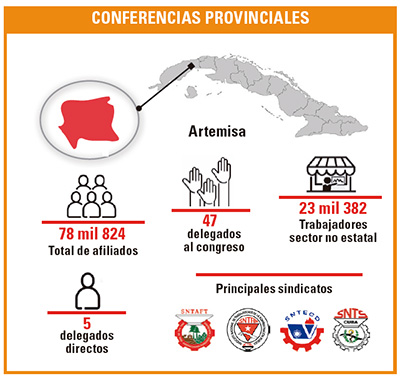 Artemisa, con 78 mil 824 afiliados, tiende al decrecimiento de un año a otro, pero tiene reservas en la incorporación de los trabajadores no estatales, que suman 5 mil 219 sindicalizados, el 19 % del total.