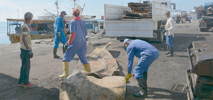 “Esto es un desastre”, se lamentó José Luis Páez Rodríguez, pescador de la embarcación langostera 110, perteneciente a la extractiva Boca de Galafre, quien ayudaba al saneamiento mientras avituallaban al barco para salir a la zona de captura, porque sabe que ahora hay que hacer lo que sea necesario para la recuperación.