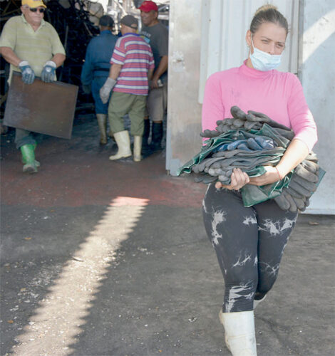 De unas manos a otras pasan guantes y cascos, pues para entrar a limpiar hay que hacerlo con los medios de protección “si no perdimos a nadie en medio del siniestro, ahora no puede ocurrir ningún accidente”, comentó Yordan Nogueira Tapia, director general de Epicol.