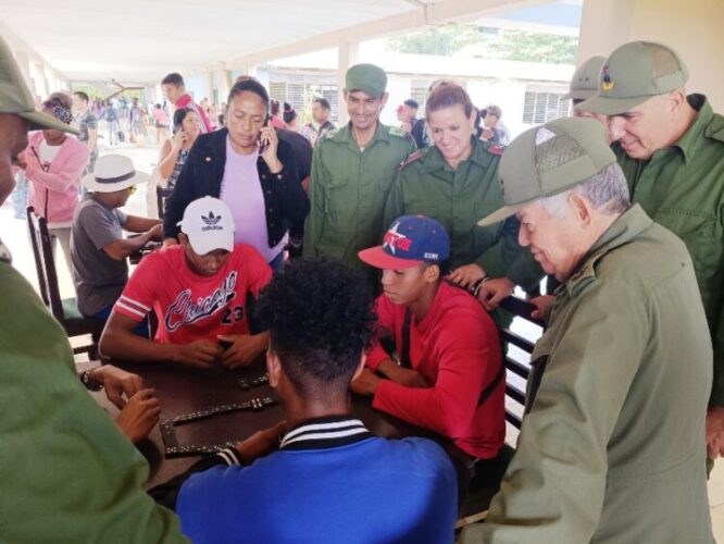 Los dirigentes intercambiaron con las familias protegidas y les expresaron la disposición de atenderlos y de mitigar la ansiedad y la incertidumbre que generan estas contingencias climatológicas, en las que constituye prioridad salvar la vida, asunto al que el Estado cubano dedica todos sus empeños.