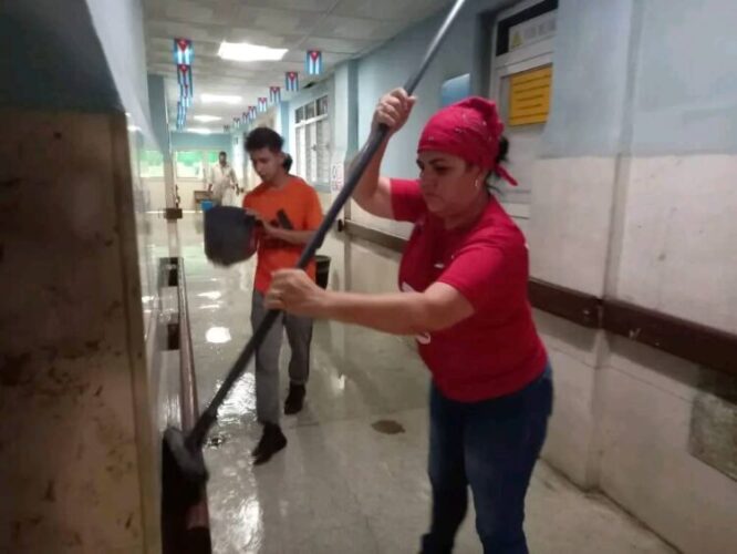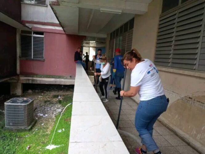 A ellas se sumaron representantes de la Central de Trabajadores de Cuba (CTC), la Unión de Jóvenes Comunistas (UJC), y otros trabajadores de la administración pública. Esteban Ring, director del centro hospitalario, también acompañó el esfuerzo.