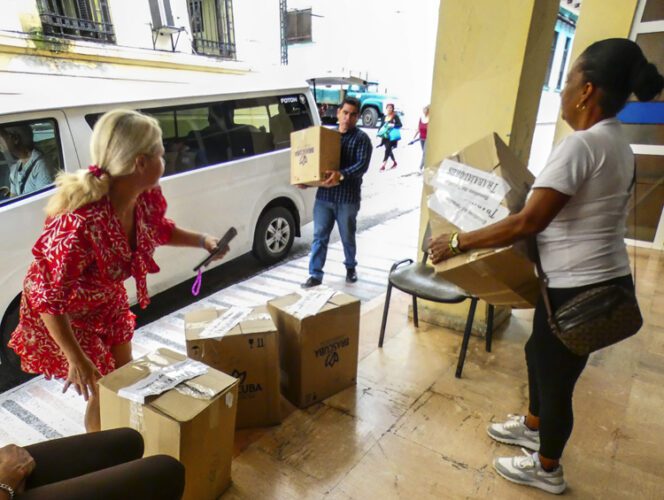 Los integrantes del colectivo del Periódico Trabajadores entregaron este martes en la sede nacional de la Central de Trabajadores de Cuba (CTC) cinco cajas con donaciones para los territorios afectados por el huracán Melissa en días recientes.