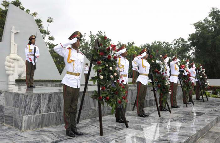 Jefes y oficiales de las FAR y el MININT, representantes del cuerpo diplomático militar acreditado en Cuba y combatientes del Ejército Occidental, presentes en el Mausoleo también rindieron honores a los combatientes de las antiguas Repúblicas Soviéticas que perdieron la vida en Cuba durante el cumplimiento de misiones internacionalistas, cuyos restos reposan en el lugar.