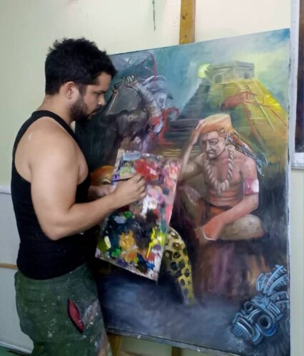 En ocasión del aniversario 506 de la fundación de la Villa de San Cristóbal de La Habana, el joven y destacado pintor, dibujante, escultor y ceramista, Enrique Alfonso Rodríguez (La Habana, 20 de abril de 1989), acaba de concluir la pieza El peso del mundo, óleo sobre lienzo, 180x120cm, recreada en el Santo Mártir nacido en la antigua tierra de Caanán, Asia Occidental, entre el Mediterráneo y el río Jordán, bajo el nombre de Offerus, quien sobresalía entre sus coterráneos por su gigantesca estatura, de más de dos metros, según asegura la leyenda.