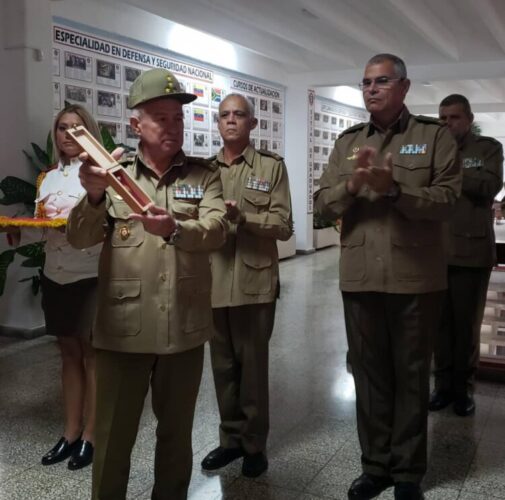 En nombre del General de Ejército Raúl Castro Ruz, líder de la Revolución, el miembro del Buró Político del Partido y ministro de las Fuerzas Armadas Revolucionarias, General de Cuerpo de Ejército Álvaro López Miera, entregó la Orden Antonio Maceo al Colegio de Defensa Nacional (CODEN), con motivo del aniversario 35 de esa institución.