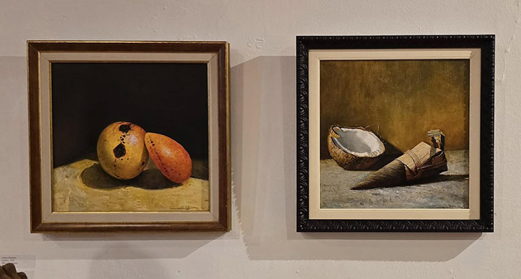 Asimismo, por su reflejo de la cotidianidad insular entre buena parte de los cubanos de estos tiempos, entre las piezas expuestas se destacan las de Agustín Bejarano (Camagüey, 1964), que en mi criterio merecen mención aparte. Se trata de los cuadros titulados Mi mesa, un drama y el cosmos y Plegaria del buen hijo, caracterizados por su compleja técnica mixta sobre lienzo y su profunda exploración de temas existenciales y sociales.