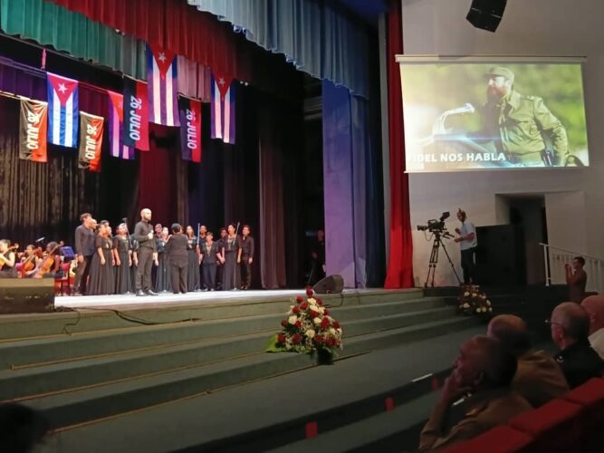 «Fidel nos habla» se tituló la velada dedicada a él a cargo de artistas defensores de la identidad nacional como los cantantes Annie Garcés y Bryan Daniel Suárez Leyva; el declamador primer actor Julio César Ramírez, los trovadores Ariel Díaz y Nelson Valdés; los repentistas Luis Paz Esquivel, Emiliano Sardiñas Copello y el Kikiri de Cisneros, así como el Coro Nacional dirigido por la maestra Digna Guerra.