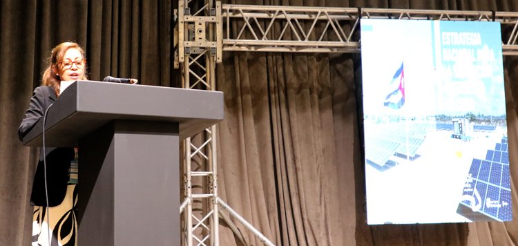 Marlenis Águila Zamora, especialista principal de la Dirección de energías renovables del Minem, presentó la estrategia nacional de transición energética. Foto: Jorge Luis Sánchez Rivera
