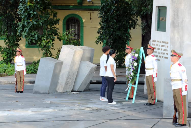 Una ofrenda floral fue colocada al líder estudiantil y antimperialista Julio Antonio Mella, a un costado de la Casa de altos Estudios, dónde además se efectuaron el toque de atiendan todos y el pase de lista de los mártires de la Federación Estudiantil Universitaria FEU.