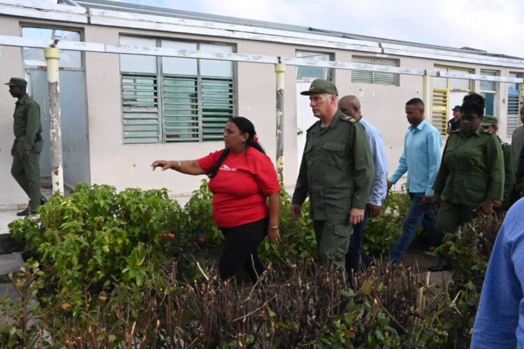 En su sexta visita a territorio santiaguero en poco más de un mes tras el paso de Melissa, el Jefe de Estado estuvo acompañado por el miembro del Buró Político y secretario de Organización del Comité Central del Partido, Roberto Morales Ojeda; el viceprimer ministro Jorge Luis Tapia Fonseca, quien apoya a la provincia desde la víspera de la entrada del huracán; varios ministros y viceministros, y las principales autoridades de la provincia, liderados por la compañera Beatriz Johnson Urrutia.