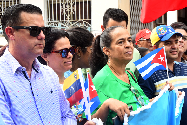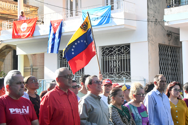 En 17, una céntrica calle de la capital cubana, se celebró este sábado un acto como parte de la Jornada Mundial de Solidaridad con Venezuela. Presidido por el ministro de Relaciones Exteriores, Bruno Rodríguez Parrilla; la secretaria de la Federación de Mujeres Cubanas, Teresa Amarelle Boué, y el Embajador venezolano, Orlando Maneiro Gaspar, se condenó desde La Habana la creciente agresividad de Estados Unidos contra la nación bolivariana.
