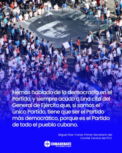 “Hemos hablado de la democracia en el Partido, y siempre acudo a una cita del General de Ejército que, si somos el único Partido, tiene que ser el Partido más democrático, porque es el Partido de todo el pueblo cubano.”