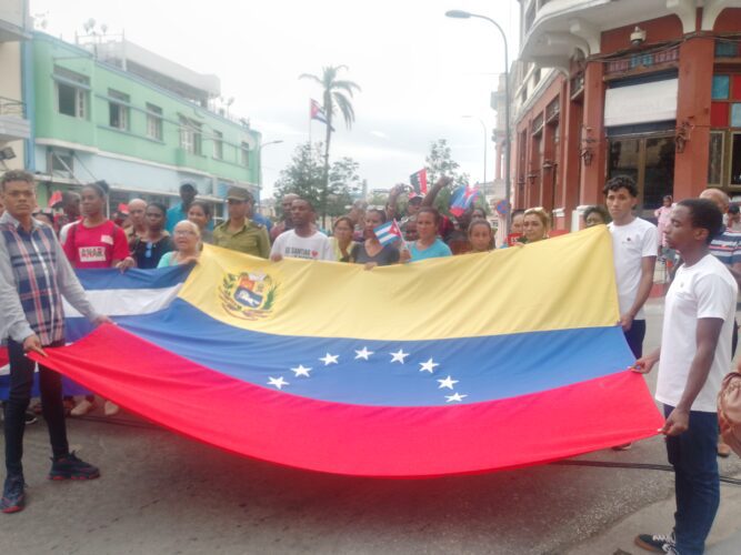 En nombre de la Asociación de Combatientes de la Revolución Cubana (ACRC), la Federación Estudiantil Universitaria (FEU), la Unión de Escritores y Artistas de Cuba (UNEAC), y el Instituto Cubano de Amistad con los Pueblos (ICAP), se reafirmó que Venezuela no es amenaza, es esperanza, que los cubanos sentimos en lo más hondo lo que ahora mismo se vive en la hermana nación y tenemos la obligación moral de defender la patria grande de Bolívar y Chávez.