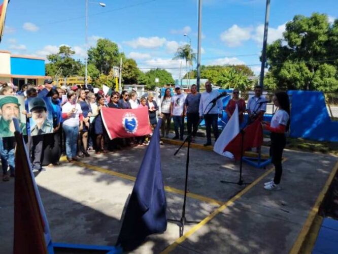 Alexis Blanco Cordoví, secretario del Buró sindical de la dirección Municipal de Educación subrayó: “Se intenta imponer un cambio de régimen en Venezuela, a favor de un gobierno títere a favor de los intereses yanquis. Los venezolanos pueden contar con la solidaridad internacional, pues es un país que ha resistido y derrotado imperios desde 1811 y existe una continuidad histórica entre libertadores, de Bolívar a Chávez y Maduro.”