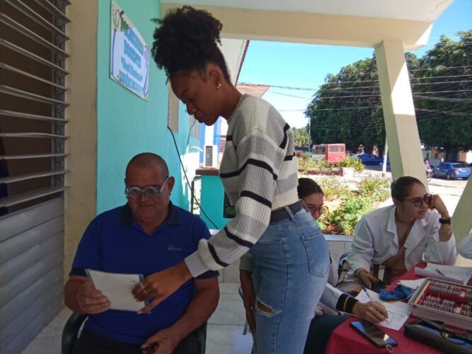 Unas 80 personas fueron atendidas exactamente en la zona del Paseo, área donde facultativos auscultaron a pacientes agradecidos por recibir la atención en la cercanía de sus hogares, con el valor adicional de no tener que trasladarse a la capital provincial en tiempos de limitaciones con el combustible y la transportación.