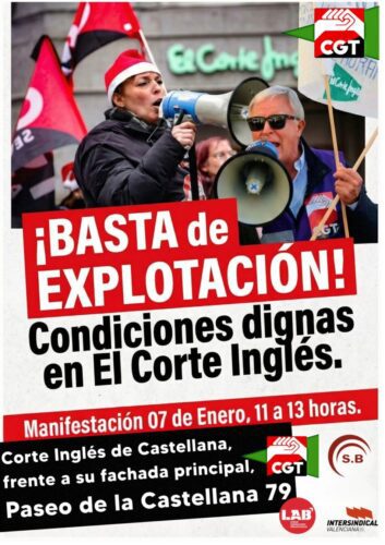 La Confederación General del Trabajo (CGT) en El Corte Inglés cumple un año de movilizaciones continuadas para denunciar el deterioro de las condiciones laborales en la empresa. El aniversario coincide con una fecha ya histórica para la plantilla: el 7 de enero de 2025, cuando tuvo lugar la primera manifestación en la historia de El Corte Inglés, celebrada en el barrio de Salamanca, rompiendo por primera vez el silencio y el miedo en una compañía que durante décadas ha blindado su imagen frente a cualquier protesta laboral.