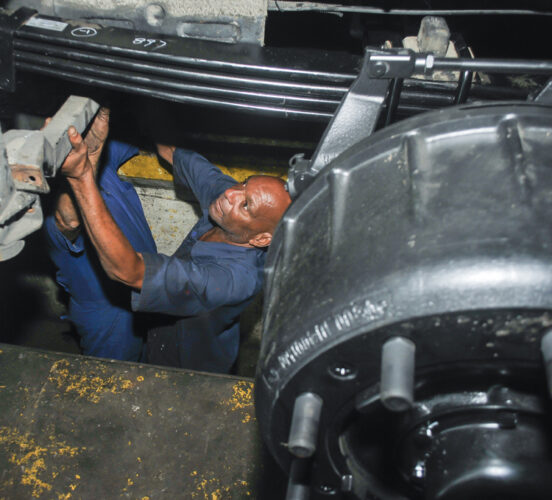 Trabajadores de la Empresa Productora de Ómnibus Evelio Prieto Guillama, ubicada en Guanajay, laboran intensamente en la reparación capital de 100 ómnibus para el transporte de pasajeros en La Habana