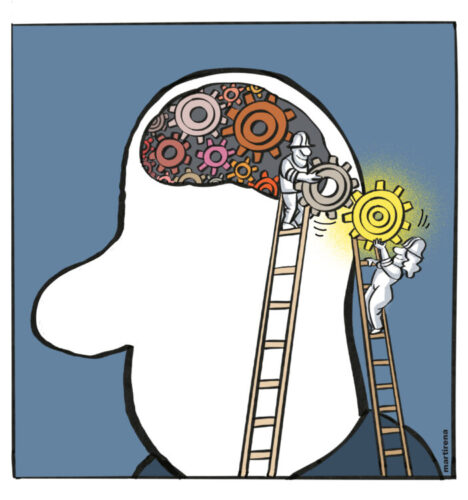 Si nos atenemos literalmente a la expresión: encaramarse en sus propios hombros, el tema del cambio de mentalidad sería algo sobre lo cual no habría nada que hacer porque sería imposible.
