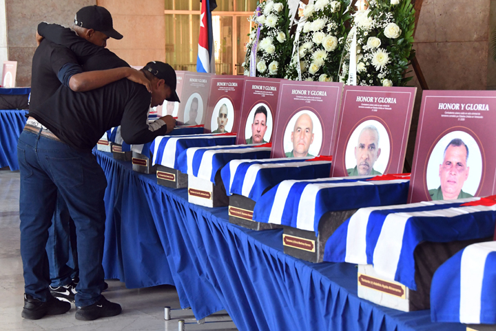 Entre los oficiales que acompañaban el traslado de las honras fúnebres estaba el teniente Daniel Rodríguez Blanco, de 29 años, integrante de la Unidad de Ceremonias de las Fuerzas Armadas Revolucionarias. “Trasladar los restos de compañeros que dieron la vida… duele”, confesó. “Uno piensa en los familiares. Si nosotros sentimos este dolor, ¿cómo estarán ellos? Muchos eran de mi misma edad. Tenían hijos, padres, hermanos. Una vida por delante.