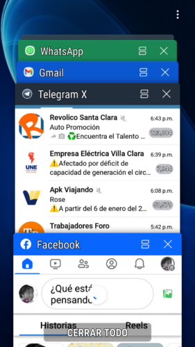 Sin conocimientos, pero con curiosidad, cuando me dio el celular para que comprobara la lentitud, toque un icono de 2 cuadritos ubicado en la parte inferior izquierda y luego seleccioné CERRAR TODO.
