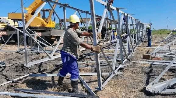 El restablecimiento de las torres de alta tensión está entre las labores heroicas de los trabajadores eléctricos de Granma. Foto: Empresa eléctrica de Granma