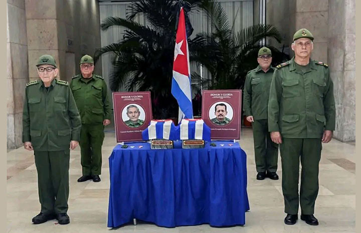 Como parte del sentido homenaje del pueblo a los héroes caídos en feroz combate en Venezuela, el General de Ejército Raúl Castro Ruz, líder al frente de la Revolución cubana, acompañado por el Presidente Miguel Díaz-Canel, encabezó este jueves la última guardia de honor a los combatientes caídos en Venezuela, en la sede del Ministerio de las Fuerzas Armadas Revolucionarias.