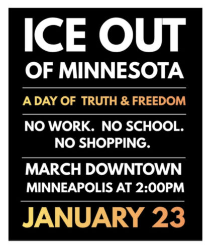 Tres días después, la Federación Regional del Trabajo de Minneapolis, AFL-CIO, respaldó el llamado a los minnesotanos para que se tomaran un día sin trabajar, ni ir a la escuela, ni hacer compras: “Los trabajadores, nuestras escuelas y nuestras comunidades están bajo ataque”, declaró Chelsie Glaubitz Gabiou, presidenta de la federación.