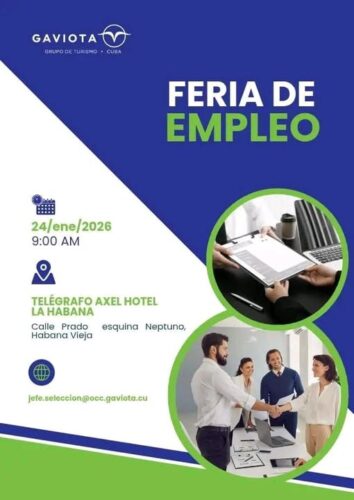 Este sábado 24 de enero el Grupo de Turismo Gaviota ofrece oportunidades en la Feria de Empleo que se efectuará en Telégrafo Axel Hotel La Habana, a partir de las 9:00 am.