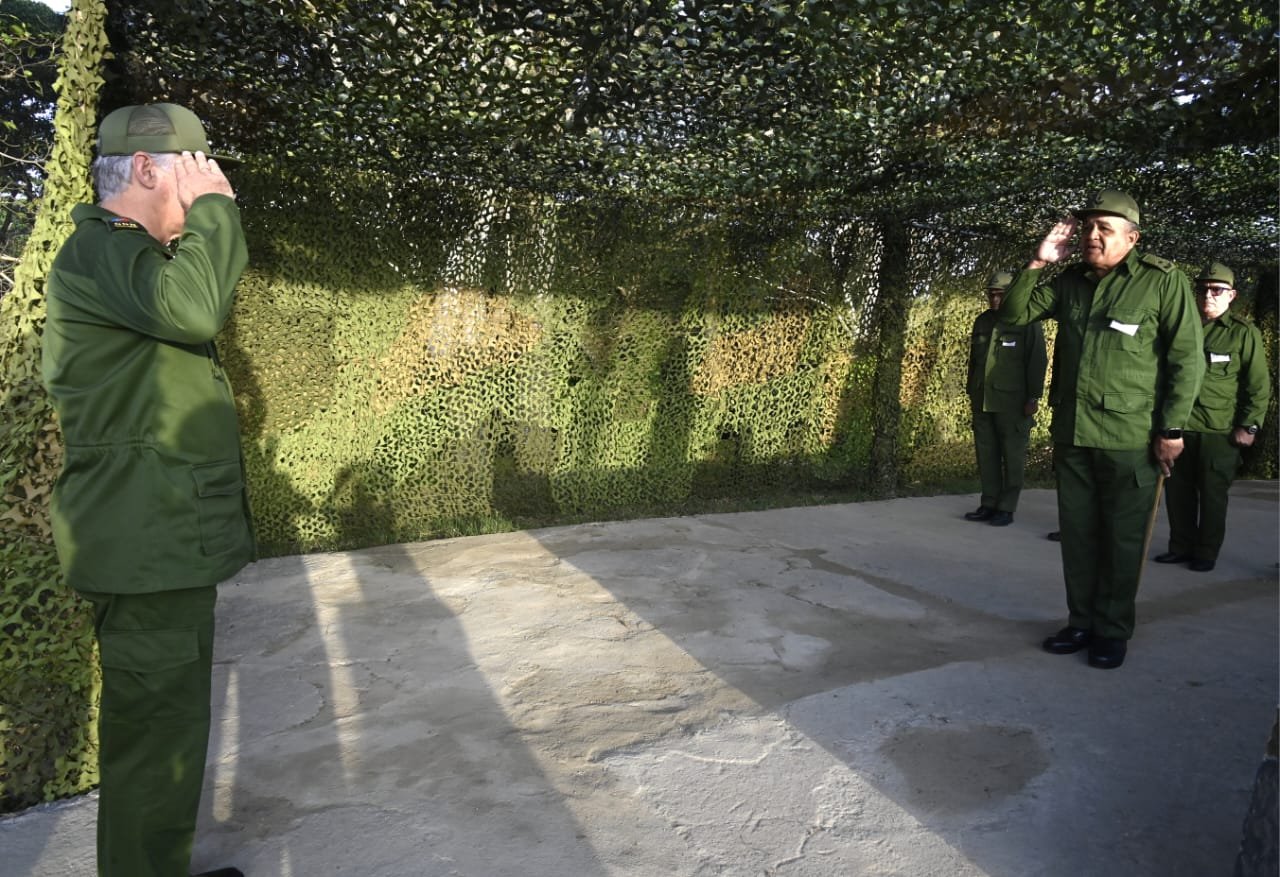 El primer momento en el cual estuvo presente el dignatario fue un ejercicio táctico demostrativo en la Gran Unidad de Tanques de la Gloria Combativa “Rescate de Sanguily”, en el cual el Jefe de Estado estuvo acompañado por el General de Cuerpo de Ejército y ministro de las Fuerzas Armadas Revolucionarias (FAR), Álvaro López Miera; por el General de Cuerpo de Ejército Roberto Legrá Sotolongo, viceministro primero y Jefe del Estado Mayor General de las FAR -ambos, miembros del Buró Político-; así como por el General de Cuerpo de Ejército y viceministro de las FAR, Joaquín Quintas Solá, entre otros jefes de las Fuerzas Armadas.