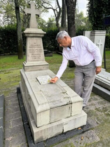 El autor del artículo rinde tributo al doctor Francisco Montes de Oca en su tumba de la Rotonda de las Personas Ilustres.