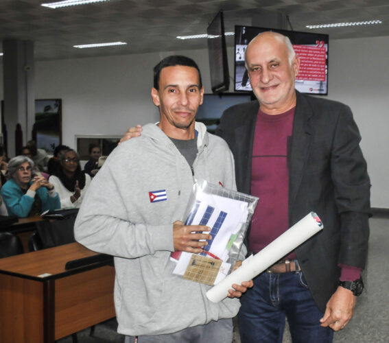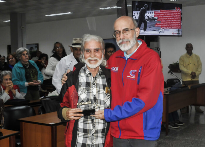 Un momento emotivo selló la asamblea, nuestro querido colega y destacado poeta, periodista e historietista Pedro Péglez Gonzáles recibió el trofeo Una fiel Osadía, un merecido reconocimiento a su larga trayectoria en el periodismo cubano y, especialmente, en Trabajadores.