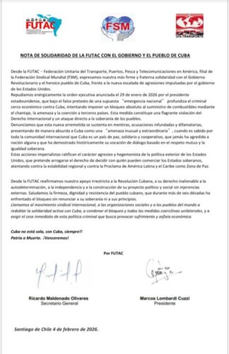- Esta nueva acción contra Cuba implica una profundización de las agresiones que el gobierno de Trump viene desarrollando contra los pueblos de América Latina. Ante esta coyuntura, convocamos al movimiento popular a seguir organizando y articulando acciones de solidaridad y denuncia.