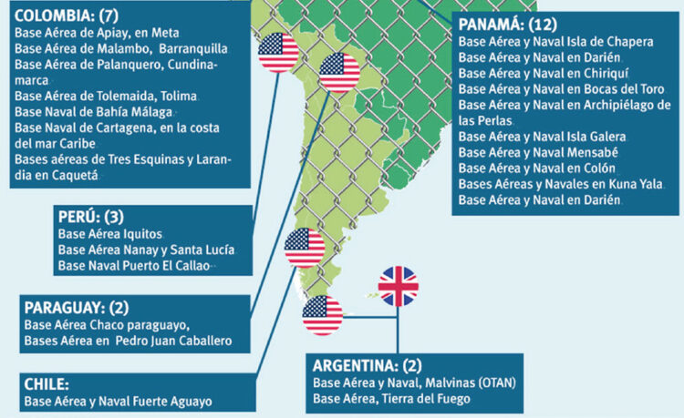 Sus bases militares han sido instaladas enmascarándolas en la supuesta lucha contra el terro­rismo, el narcotráfico y para hi­potéticas intervenciones humani­tarias por el efecto de fenómenos naturales. Hay que aclarar que Washington exige inmunidad de sus soldados a las naciones en las que están enclavadas.