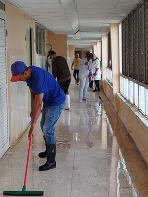 Las acciones comenzaron el sábado último y continuaron este domingo con la limpieza de locales en el Hospital Provincial Docente Doctor Antonio Luaces Iraola, de la capital provincial, donde se realizará próximamente la reapertura de instalaciones remodeladas, según se conoció.