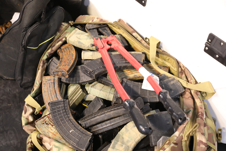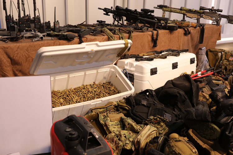 Se contabilizaron 134 cargadores y un total de 12 846 municiones de diferentes calibres, entre ellos 5.56×45 mm y 7.62 mm (AKM). Una de las pistolas ocupadas tenía capacidad para perforar chalecos antibalas. Asimismo, fueron incautados un dron con dos cámaras, diez equipos de comunicación, cuchillos de comando, una planta eléctrica portátil, una cizalla para cortar candados y emblemas identificativos, entre ellos el del denominado movimiento contrarrevolucionario 30 de Noviembre y distintivos de “autodefensa del pueblo”.