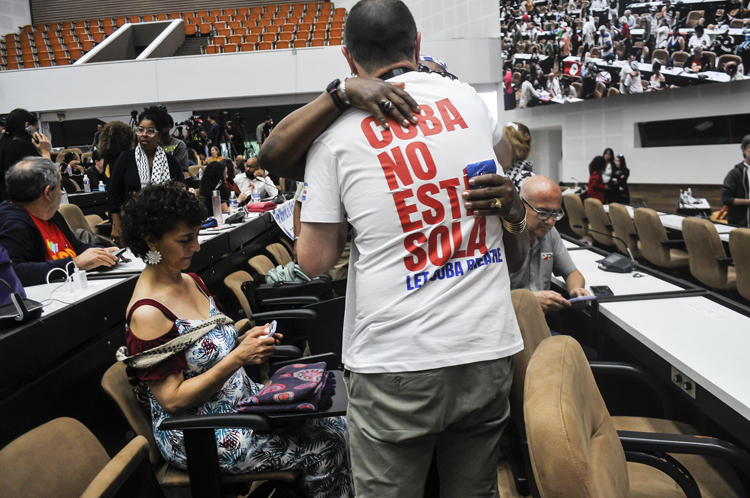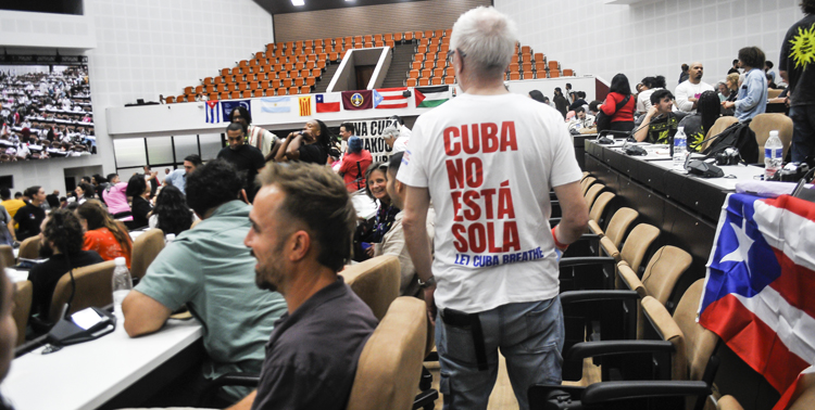 En la bienvenida, Fernando González Llort expresó a los activistas “son bienvenidos a esta casa que también es su casa”. Y así, uno tras otro, los testimonios fueron encendiendo la atmósfera: Fernando Pereira, presidente del Frente Amplio de Uruguay, habló desde la urgencia de un mundo convulso —marcado por el genocidio en Gaza, el secuestro del presidente venezolano Nicolás Maduro y el bombardeo en Irán— para insistir en que la paz se sostiene en la no injerencia y en la justicia social. “Cuba no está sola ni va a estar sola”, dijo, “junto a ella vamos a estar quienes creemos en la justicia social y la autoderminación de los pueblos.