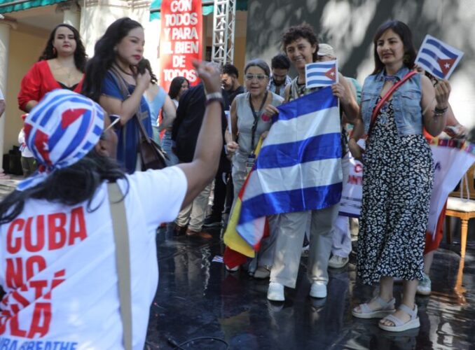 También intervinieron en el acto la eurodiputada francesa Emma Fourreau y Bianca Borges, presidenta de la Unión Nacional de Estudiantes de Brasil. La joven brasileña expresó que «en medio de las agresiones del imperio y las dificultades, renace la certeza de que América Latina no será colonia de nadie, sino potencia de sus propios pueblos» y valoró como fundamental la solidaridad con Cuba y el combate al bloqueo. «Si los imperialistas intensifican la agresión, nosotros intensificamos la esperanza. Ellos no pueden bloquear la ternura entre los pueblos», añadió.