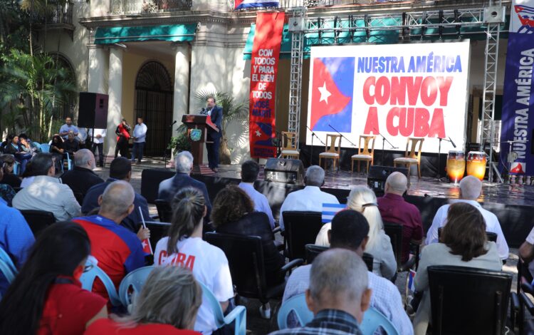 «La humanidad no acepta el bloqueo como destino, que se organiza, se moviliza, viaja, abraza —destacó— ustedes representan la certeza de que ningún cerco imperial podrá jamás encerrar la dignidad de los pueblos».