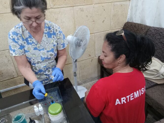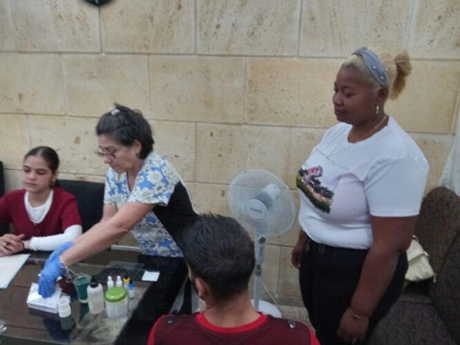 Quizás por ello una de las afiliadas de la sección sindical de la Fiscalía, Yaima Simón Terry, responsable del Departamento de Protección a las Familias y Asuntos Jurisdiccionales en la fiscalía artemiseña, estuvo entre quienes asistieron al improvisado laboratorio de extracción, ubicado en un salón de reuniones de los fiscales.