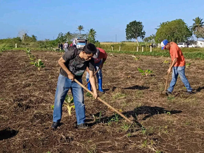 Desde el surco y aportando a la producción de alimentos, en Camagüey se leyó la convocatoria a la celebración por el Primero de Mayo. Foto: Cortesía de la CTC
