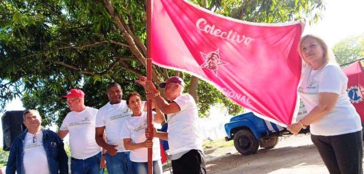 Rouseaux Mansfarroll y Odalis Batista Pérez, secretaria de la CTC en la provincia, pusieron el estandarte en manos de Orestes Benítez Fernández, Héroe del Trabajo de la República de Cuba; de Osmani Santos Labrada, director de la UEB, y de Doralis Pita Jorge, dirigente de la sección sindical.