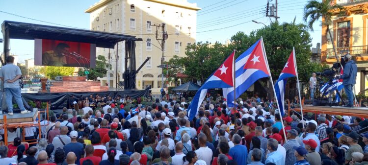 Desde horas de la madrugada una amplia representación del pueblo habanero se reunió en la histórica esquina de 23 y 12 en el Vedado, donde hace 65 años, el Comandante en Jefe Fidel Castro Ruz, declaró el carácter socialista de la Revolución, presente allí junto al pueblo el Primer Secretario del Comité Central del Partido y Presidente de la República Miguel Díaz-Canel Bermúdez.