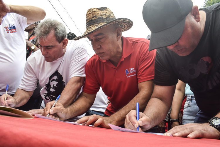 La jornada productiva celebrada en el orgonopónico perteneciente a la UBPC Primero de Julio, ubicado en el municipio capitalino del Cerro, concluyó con las rúbricas de trabajadores y dirigentes cubanos en respuesta al movimiento Mi firma por la Patria.
