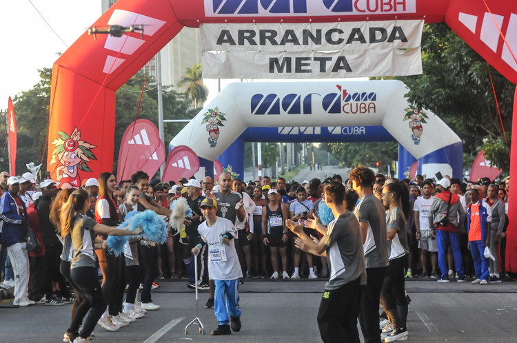 Un niño discapacitado simbólicamente comienza la carrera. Foto: José Raúl Rodríguez RobledaLa fiesta de los andarines de Cuba y del mundo. Foto: José Raúl Rodríguez Robleda