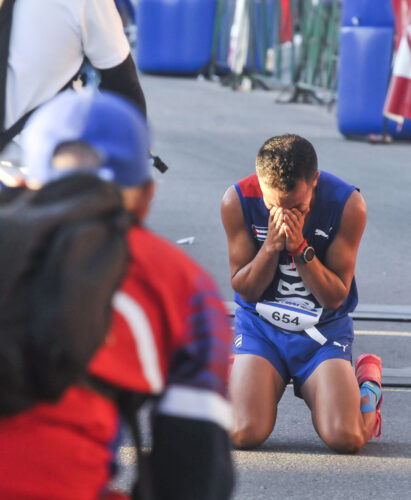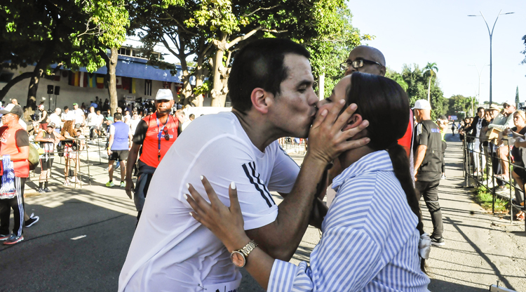 El agotamiento llega pero valió la pena. Foto: José Raúl Rodríguez RobledaEste joven colombiano interrumpió su carrera besó a la novia y le propuso matrimonio. Foto: José Raúl Rodríguez Robleda