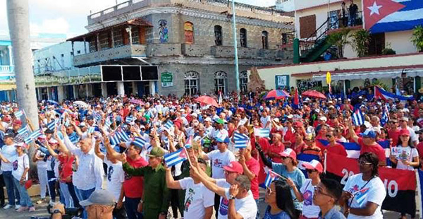 En un acto de reafirmación revolucionaria en contra del recrudecimiento del bloqueo que por más de seis décadas imponen sucesivas administraciones norteamericana y las amenazas crecientes y reales de intervención militar a la Isla con el afán de doblegar el espíritu de resistencia nacional y destruir la Revolución y ejemplo que significa para los pueblos del mundo.