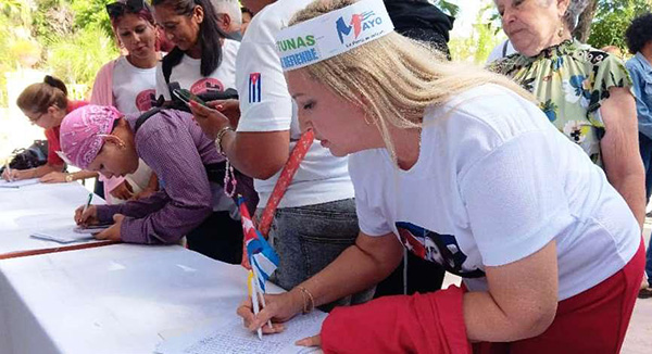 Como colofón de la manifestación popular, los asistentes firmaron Por la Patria, en un gesto que denota el compromiso de luchar en defensa de la paz y la soberanía nacional.