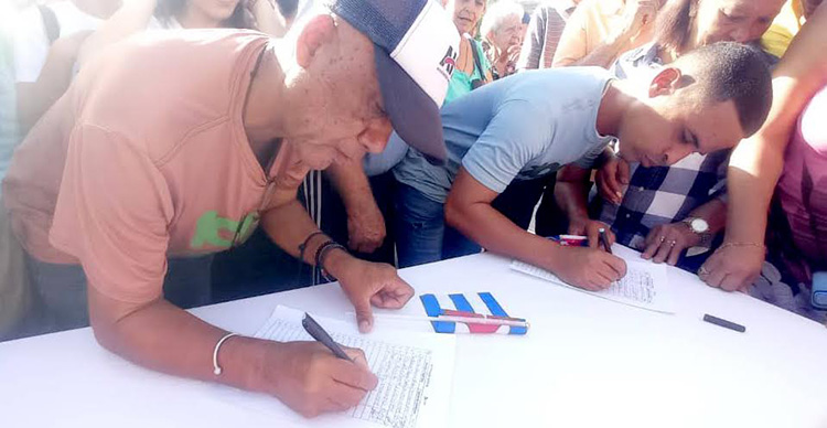 “Que nuestra firma sea el grito de un pueblo que exige su derecho a vivir en paz y a desarrollarse sin cadenas», expresó Yosmany Delgado Estrada, integrante del Buró Provincial de la Unión de Jóvenes Comunistas (UJC).